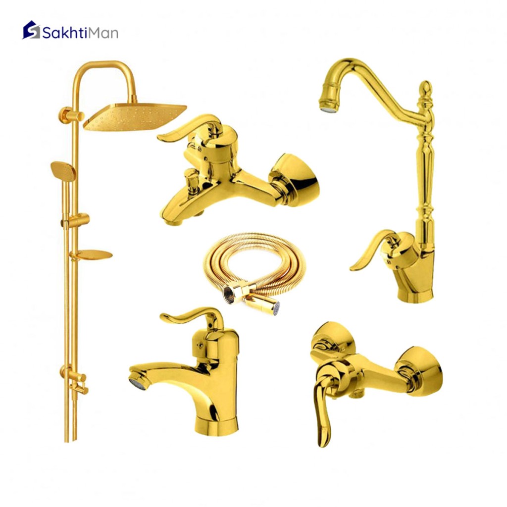 ست شش عددی شیرآلات طلایی مدل قاجاری به همراه علم دوش دوکاره دارای قیمتی مناسب و کیفیت بالایی در ساخت می باشند.