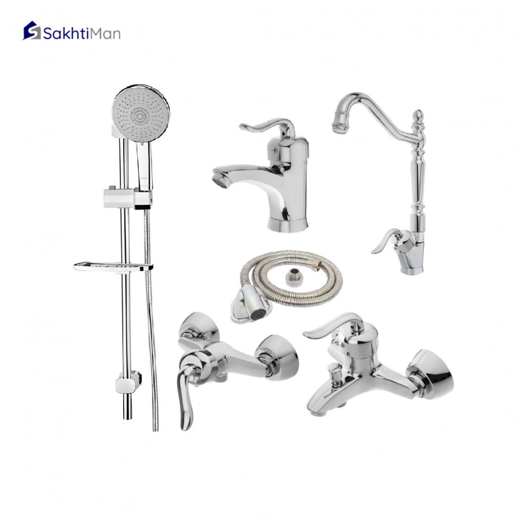 ست شش عددی شیرآلات مدل قجری به همراه علم دوش و شلنگ توالت شامل یک ست شیرآلات مدل قجری به همراه علم دوش یونیکا و شلنگ توالت نیز می باشد.