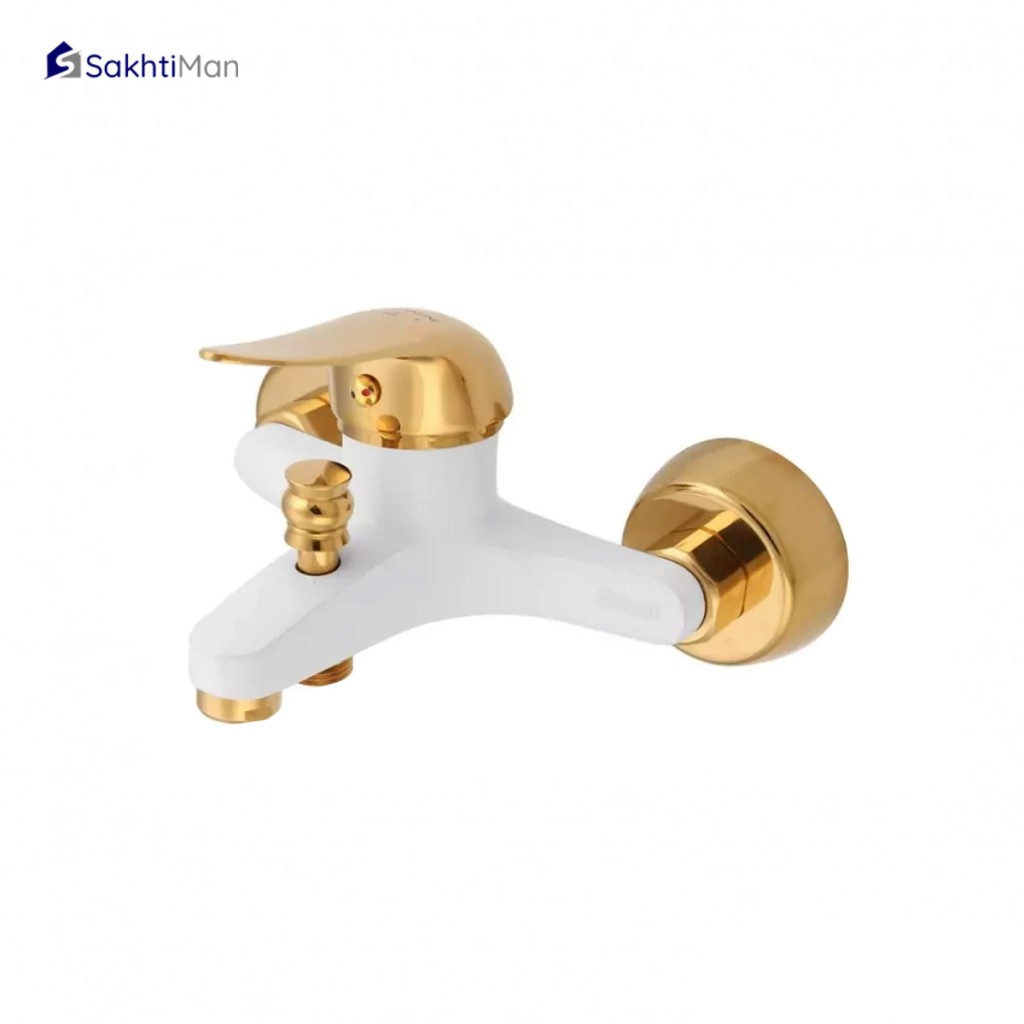 مجموعه 2 عددی شیر حمام سفید طلایی مدل اردکی به همراه علم دوش دارای قیمتی مناسب و کیفیت بالایی در ساخت می باشند.