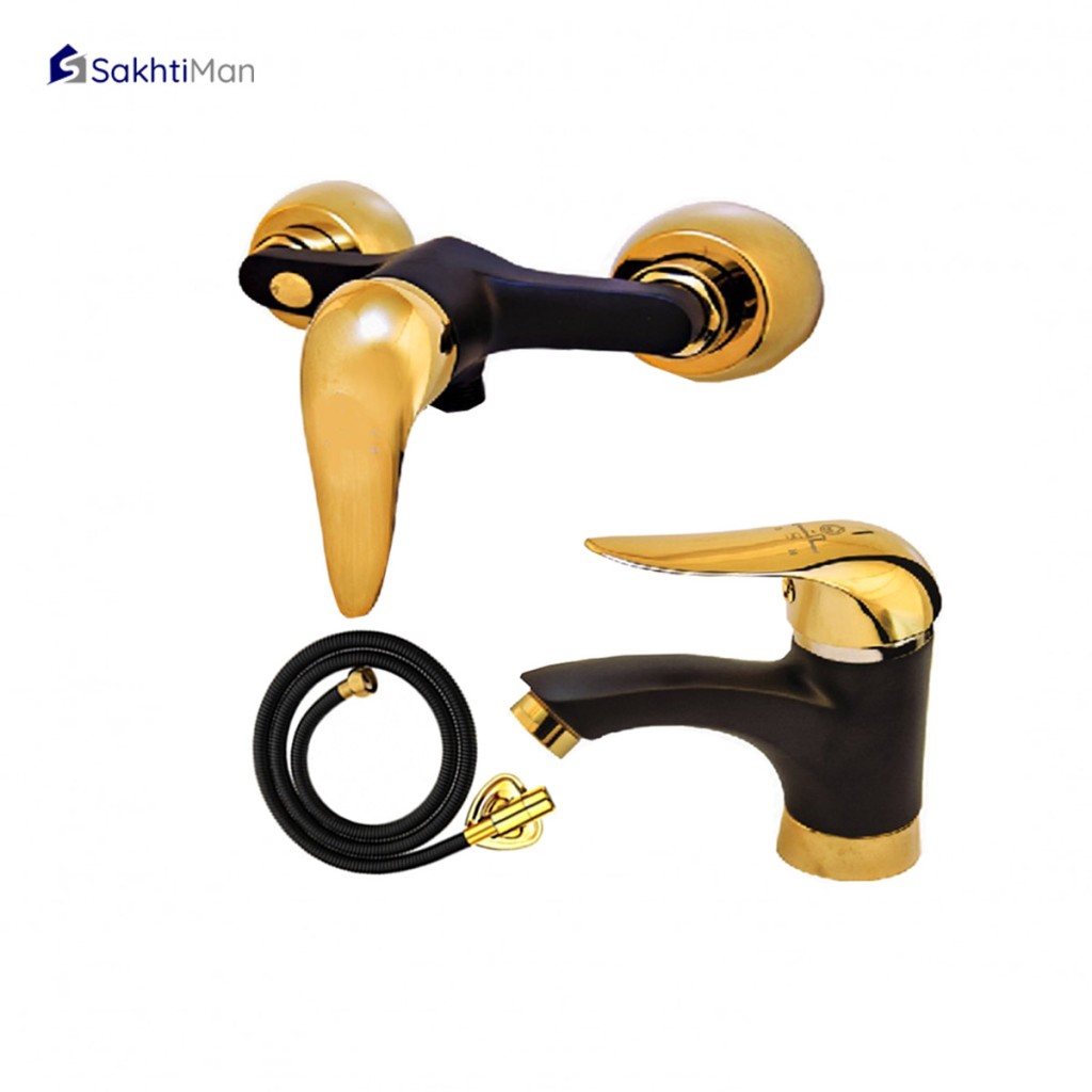 مجموعه 3 عددی شیر توالت و روشویی مشکی طلایی مدل اردکی به همراه شلنگ، انتخابی ایدهآل برای سرویس بهداشتیهای امروزی!